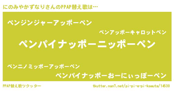 | 胡散臭い通販商品みたいなあだ名 | 『絶対に幸福をもたらす水素水…その名も「にのみやかずなり」』 |