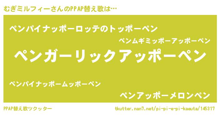 | 欧米人風あだ名 | 『マイケルむぎミルフィー』 |