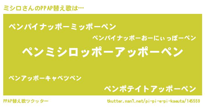 | 意味不明あだ名 | 『自称ミシロ』『とにかく怪しいミシロ』 |
