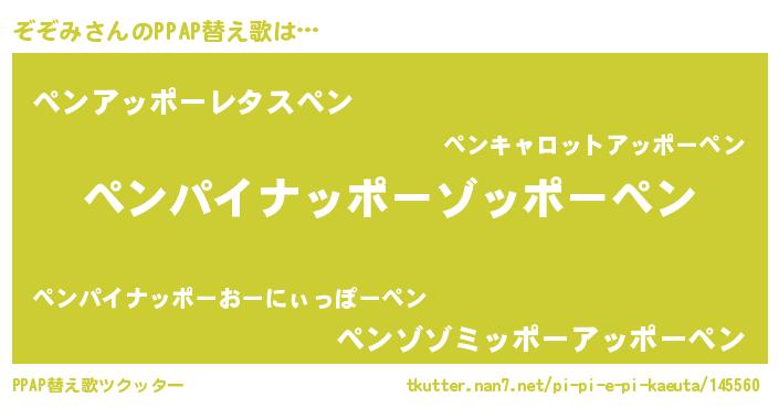 | ピコ太郎風あだ名 | 『ピコゾ郎』『ピゾ史郎』『ゾゾ四郎』 |