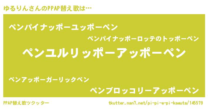 | 意味不明あだ名 | 『自称ゆるりん』『しいたけ科ゆるりん属』 |