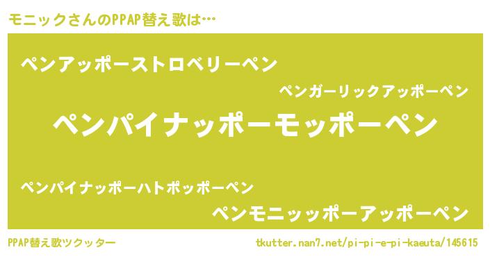 | ピコ太郎風あだ名 | 『ピコモ郎』『ピモ一郎』『モニ六郎』 |