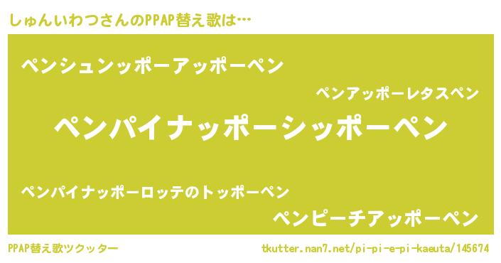| 男性向けラノベタイトル風あだ名 | 『しゅんいわつという概念が存在しない退屈な世界 』 |