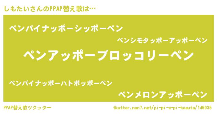 | 欧米人風あだ名 | 『しもたい・ステッグマイヤー』 |