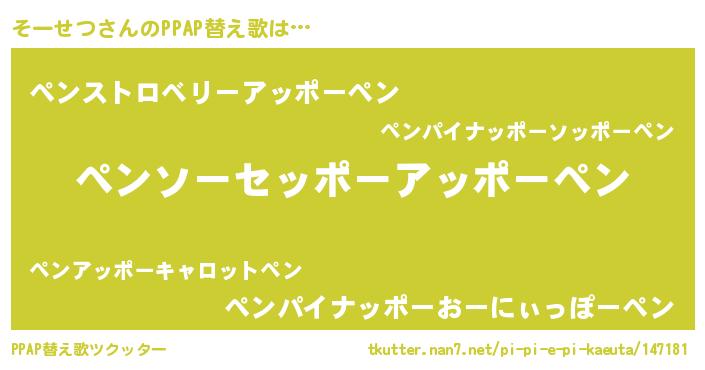 | ピコ太郎風あだ名 | 『ソー二郎』『ソコ六郎』『ソソ太郎』 |