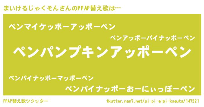 | 男性向けラノベタイトル風あだ名 | 『うちのまいけるじゃくそんが世界を掌握している!』 |