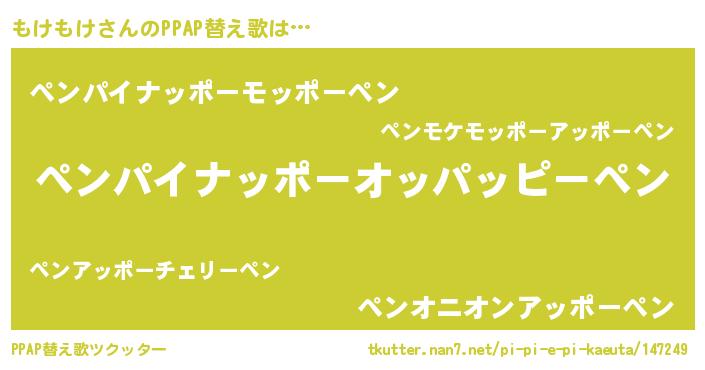 | 男性向けラノベタイトル風あだ名 | 『もけもけに滅ぼされるだけの簡単なお仕事です』 |