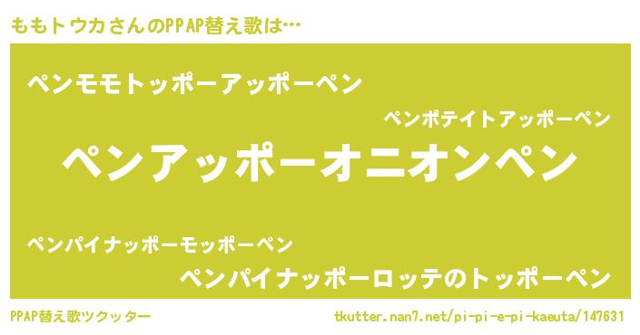 | 男性向けラノベタイトル風あだ名 | 『ももトウカに滅ぼされるだけの簡単なお仕事です』 |
