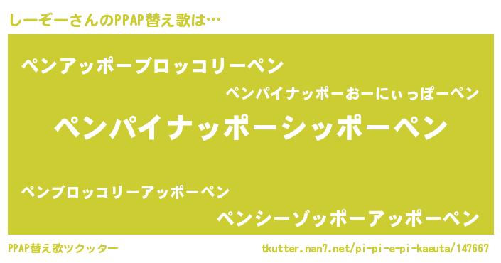 | ピコ太郎風あだ名 | 『ピコシ郎』『ピシ十郎』『シー四郎』 |