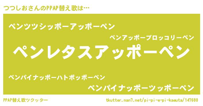 | 男性向けラノベタイトル風あだ名 | 『転生したらつつしおだった件』 |
