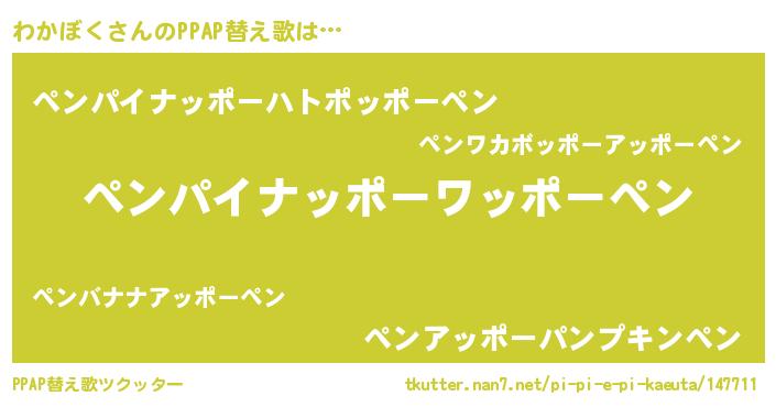 | ピコ太郎風あだ名 | 『ピコワ郎』『ワワ太郎』『ピワ二郎』 |
