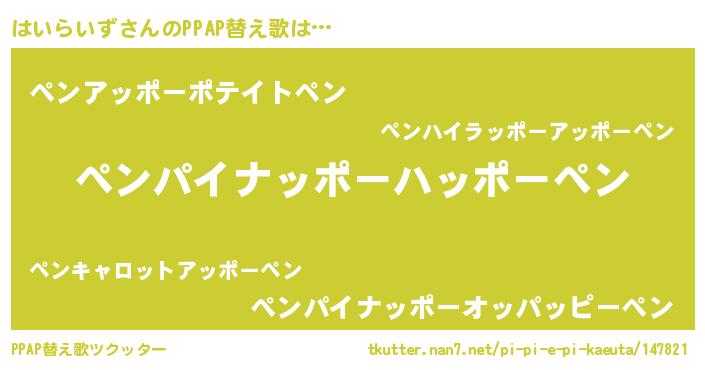 | ピコ太郎風あだ名 | 『ピコハ郎』『ピハ四郎』『ハハ太郎』 |