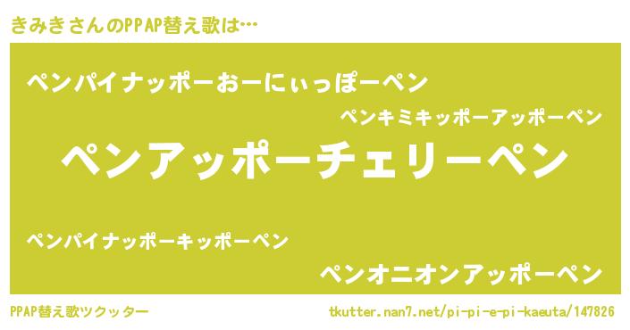 | ピコ太郎風あだ名 | 『ピキ一郎』『キキ太郎』『キコ六郎』 |