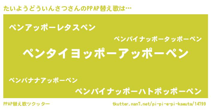 | ピコ太郎風あだ名 | 『タイ太郎』『ピタ史郎』『タタ太郎』 |