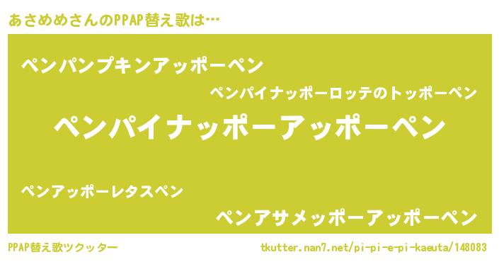 | 意味不明あだ名 | 『永久保存あさめめ』『ペロリンあさめめ』 |