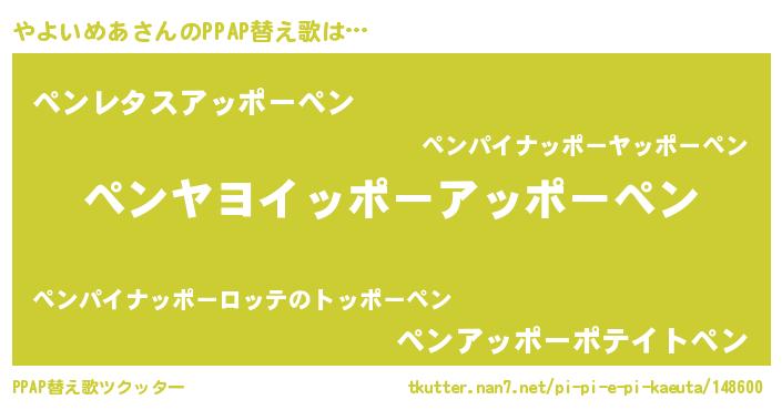 | 欧米人風あだ名 | 『ウサインやよいめあ』 |