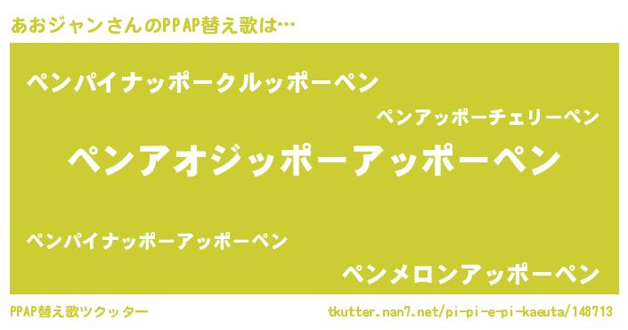 | 男性向けラノベタイトル風あだ名 | 『うちのあおジャンが世界を掌握している!』 |