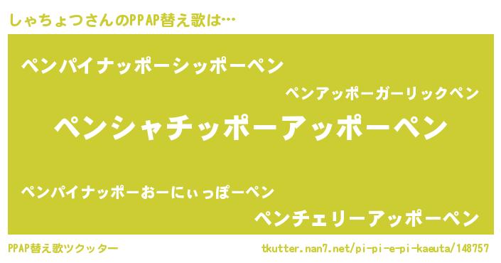 | ピコ太郎風あだ名 | 『シャ八郎』『ピコシ郎』『シコ十郎』 |