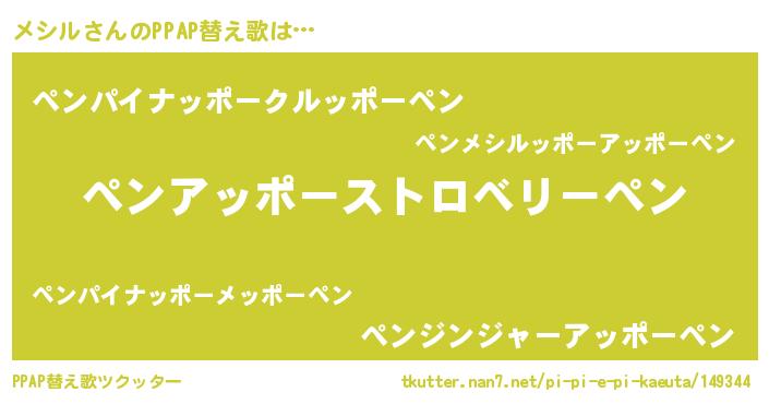 | 意味不明あだ名 | 『メシルフォーエバー』『ペロリンメシル』 |