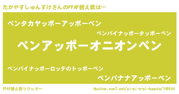 | 欧米人風あだ名 | 『アンジェラ・たかやすしゅんすけ』 |