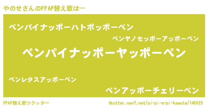 | ピコ太郎風あだ名 | 『ピコヤ郎』『ヤヤ太郎』『ピヤ三郎』 |