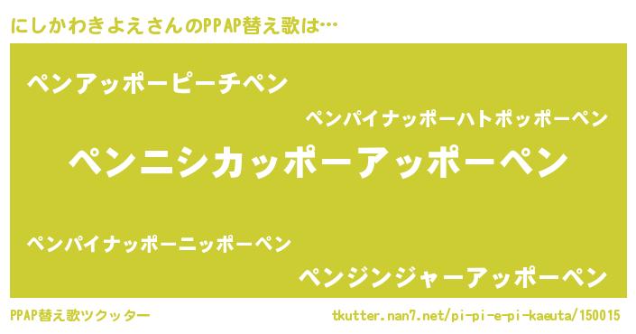 | ピコ太郎風あだ名 | 『ニシ太郎』『ピニ四郎』『ニコ八郎』 |