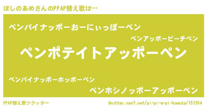 | ピコ太郎風あだ名 | 『ホコ五郎』『ホホ太郎』『ホシ六郎』 |