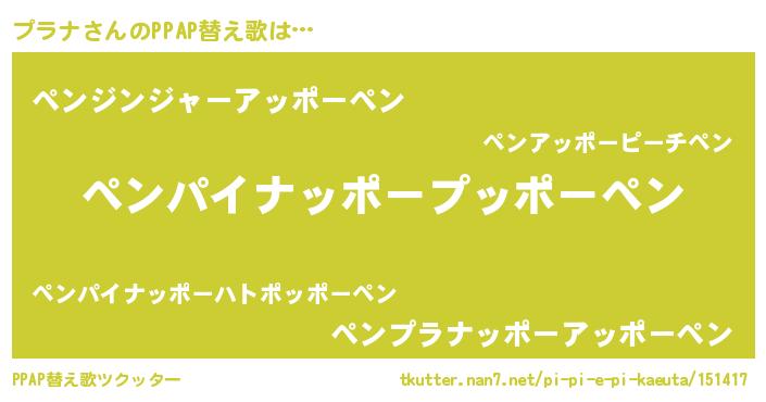 | 意味不明あだ名 | 『永久保存プラナ』『ペロリンプラナ』 |