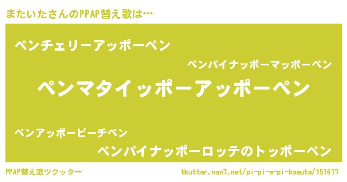 | ピコ太郎風あだ名 | 『マタ一郎』『マコ三郎』『ママ太郎』 |