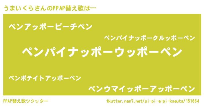 | 男性向けラノベタイトル風あだ名 | 『うちのうまいくらが世界を掌握している!』 |