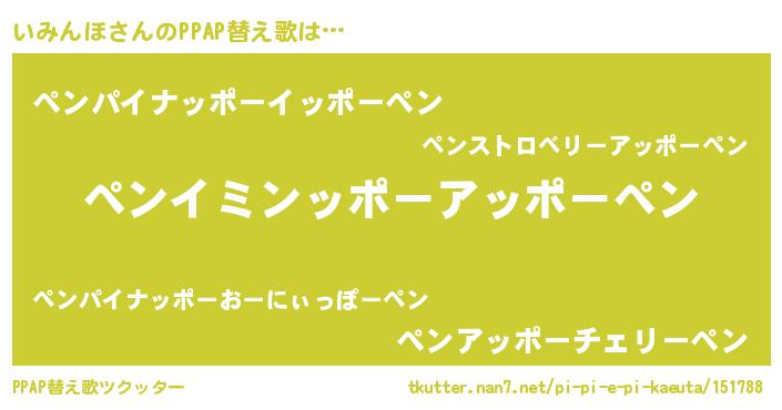 | ピコ太郎風あだ名 | 『イミ十郎』『ピコイ郎』『ピイ三郎』 |