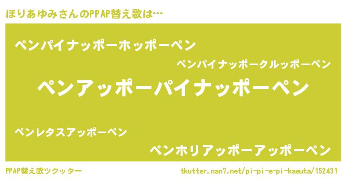 | ピコ太郎風あだ名 | 『ピホ太郎』『ピコホ郎』『ホリ史郎』 |