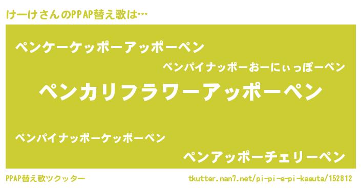 | ピコ太郎風あだ名 | 『ケコ二郎』『ケー六郎』『ピケ一郎』 |