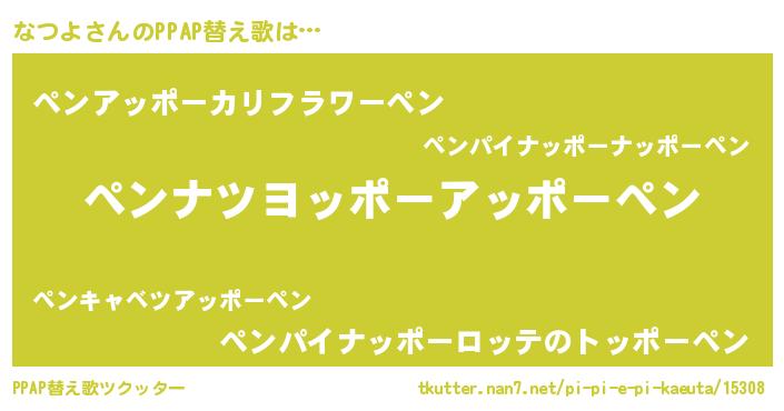 | ピコ太郎風あだ名 | 『ナツ一郎』『ピナ史郎』『ナナ太郎』 |