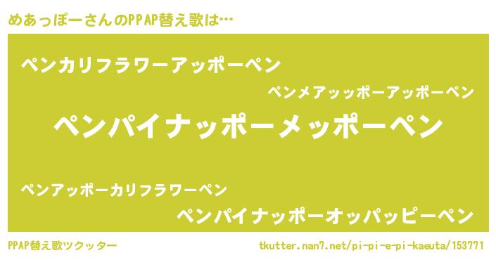 | 意味不明あだ名 | 『永久保存めあっぽー』『自称めあっぽー』 |
