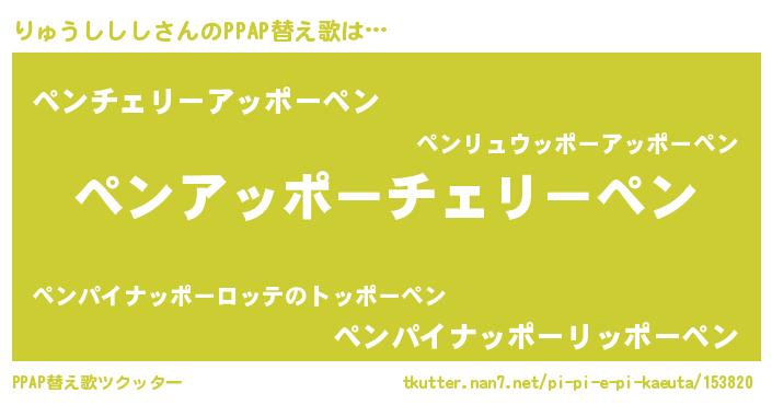 | 欧米人風あだ名 | 『りゅうししし・ステッグマイヤー』 |