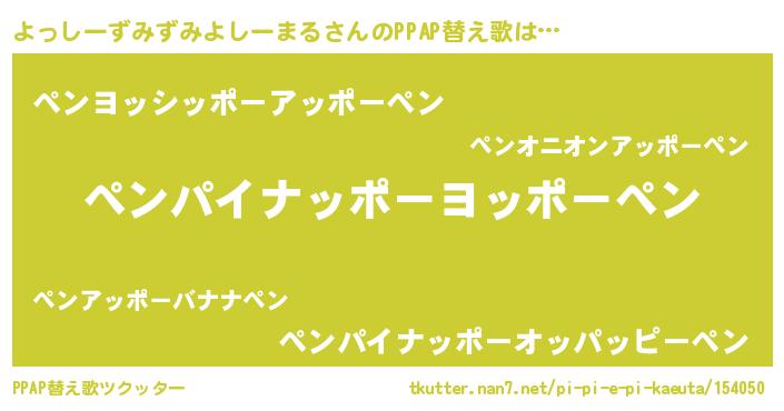 | 伝説のあだ名 | 『古より伝わる吟遊詩人よっしーずみずみよしーまる』 |