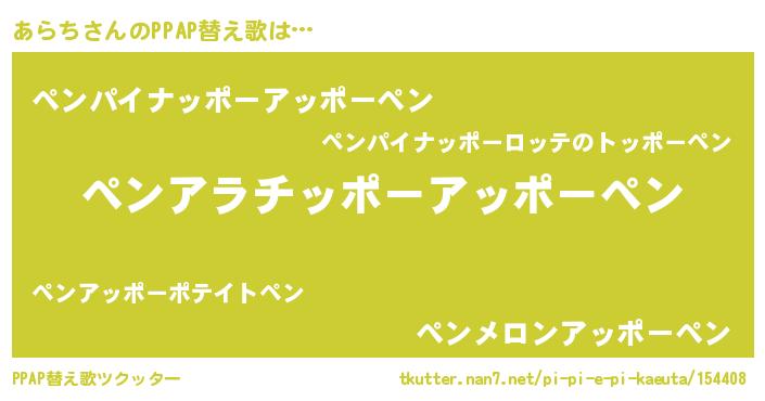 | ピコ太郎風あだ名 | 『アラ五郎』『ピコア郎』『アコ太郎』 |