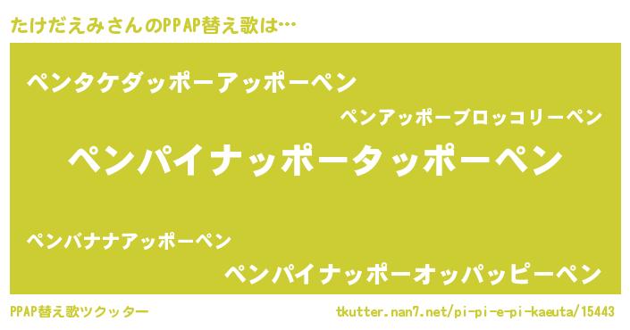 | 意味不明あだ名 | 『自称たけだえみ』『永久保存たけだえみ』 |