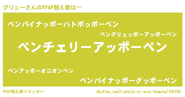 | 意味不明あだ名 | 『ペロリングリュー』『永久保存グリュー』 |