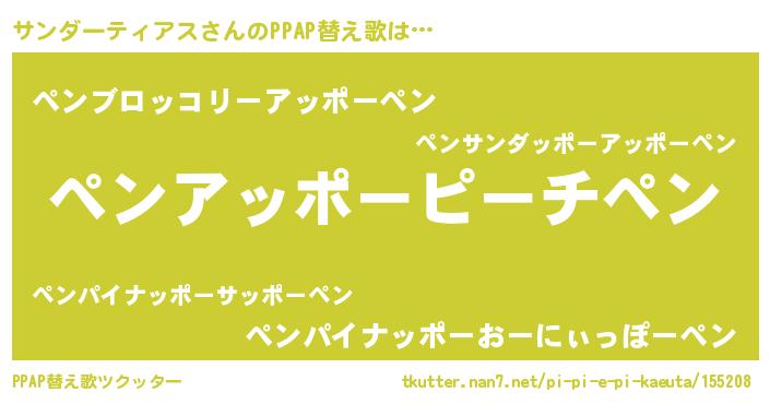| 男性向けラノベタイトル風あだ名 | 『この素晴らしい世界にサンダーティアスを!』 |