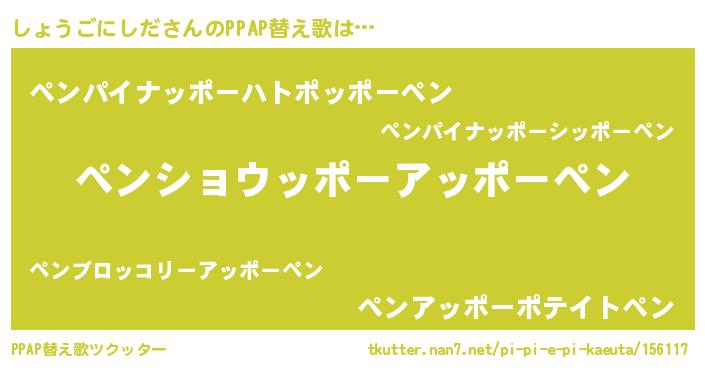 | ピコ太郎風あだ名 | 『ショ四郎』『シシ太郎』『ピシ五郎』 |
