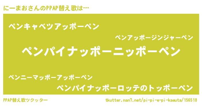 | ピコ太郎風あだ名 | 『ピコニ郎』『ニコ史郎』『ニニ太郎』 |