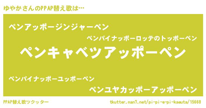 | ピコ太郎風あだ名 | 『ユコ四郎』『ピユ一郎』『ユヤ一郎』 |