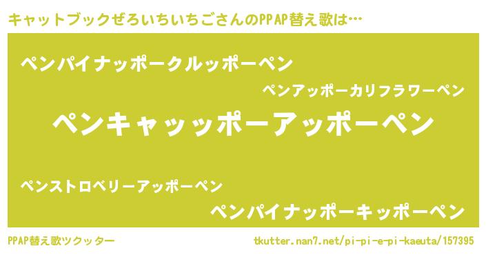 | ポケモン風あだ名 | 『ヒキャットブックゼロイチイチゴ』 |
