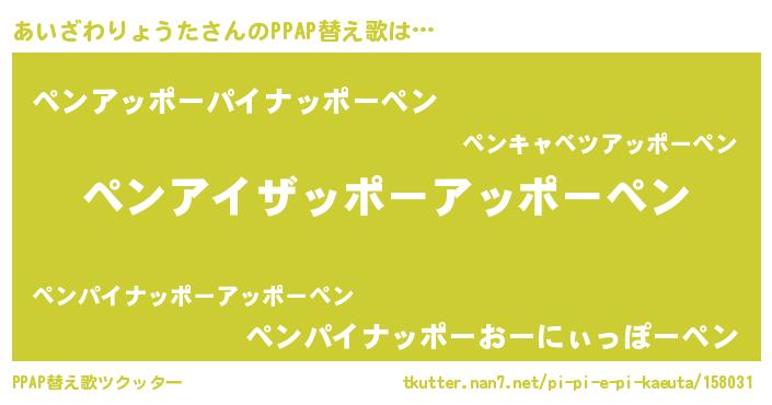 | ポケモン風あだ名 | 『ヒアイザワリョウタ』『アイザダネ』 |