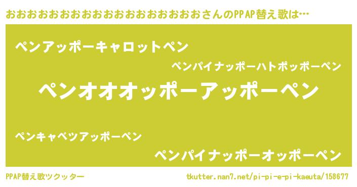 | 女子向けラノベタイトル風あだ名 | 『おおおおおおおおおおおおおおおおおおの卵を拾いまして』 |