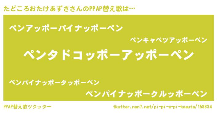 | ポケモン風あだ名 | 『ヒタドコロオタケアズサ』『タドキング』 |