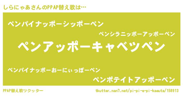 | 欧米人風あだ名 | 『しらにゃあクリステル』 |
