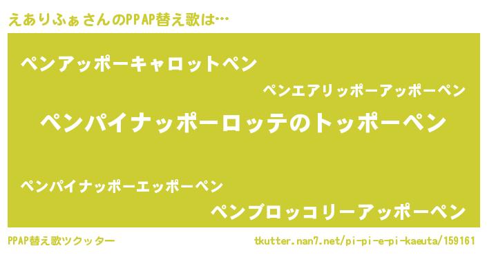 | 意味不明あだ名 | 『自称えありふぁ』『ペロリンえありふぁ』 |